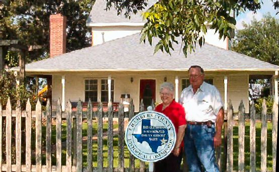 The Chambers County Historical Commission recently placed an old house recognition sign at the home of Wayne and PD Hankamer.