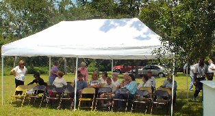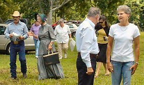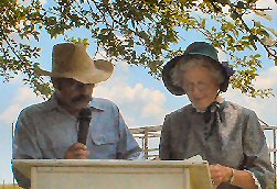 Amid gentle breezes and waving hand-held fans, about thirty visitors enjoyed the re-enactment of the lives of early pioneers of the west side of Chambers County. Ms Pat Dyer, CCHC member ,and her relative, Jay Icet, decendants of William Icet and wife Mary, presented the lives of those early settlers. Mary Icet (Pat) and William (Jay) explained to the crowd where their lives began, their migration to Texas, their children and businesses they built. William was an accomplished boat builder, supplying hand crafted boats up to 65 feet in length to other early pioneers. Boats were the primary mode of transportation back in the 1800's. Mary and William spoke of good times and bad in their lifetimes, and William spoke of his service in the Confederate Navy during the Civil War, and Mary explained the hard work wives of that period endured. Both Willian Icet and his wife, Mary, are buried in the Icet Cemetery, which was established around 1869. Article by CCHC Chair Bob Wheat and Photos by Stephanie Rowland |