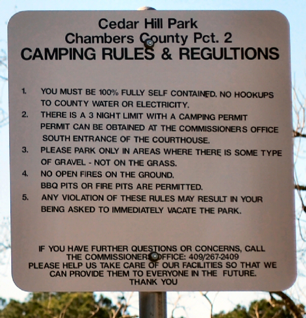 If you get locked in, call the Chambers County Sheriff's Office. 409-267-8318